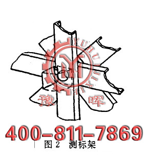 (1)在要測(cè)量的部位設(shè)測(cè)標(biāo)架(圖2),測(cè)標(biāo)架由四根槽鋼構(gòu)成,中心開(kāi)?80-?100毫米孔,孔面以帶鉸鏈的金屬翻板覆蓋。測(cè)標(biāo)架可使用簡(jiǎn)體段節(jié)在運(yùn)輸中的支撐裝置。